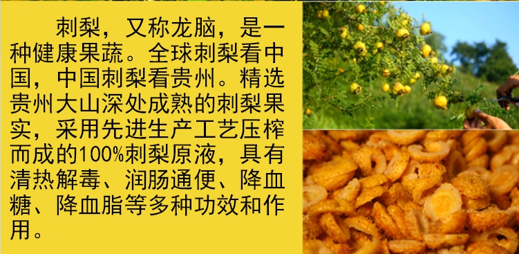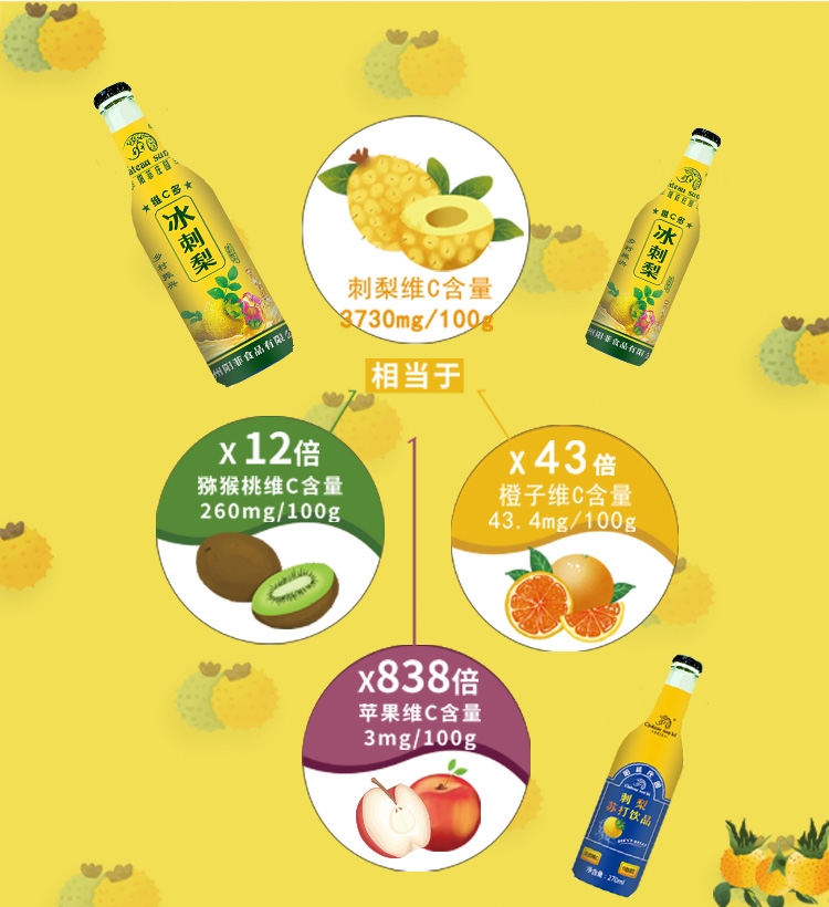商品简介:刺梨维生素C含量高,是苹果的800倍、猕猴桃的10倍。阳菲庄园刺梨气泡饮品,果香浓郁,与气泡互相融合,清香扑鼻、口感清爽、酸甜适中。一款真正的健康、营养饮品