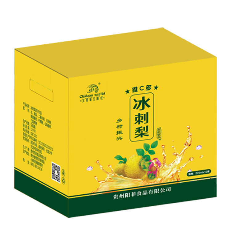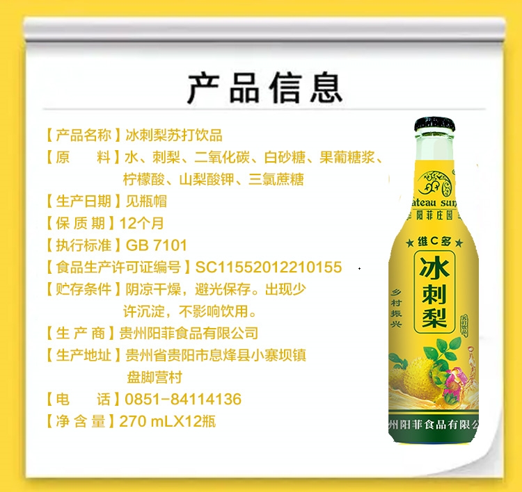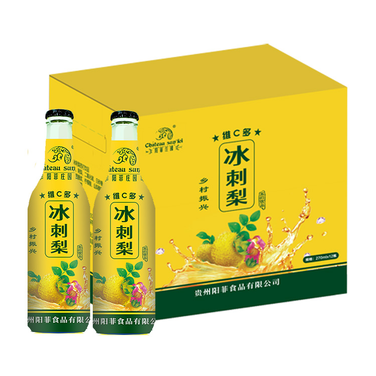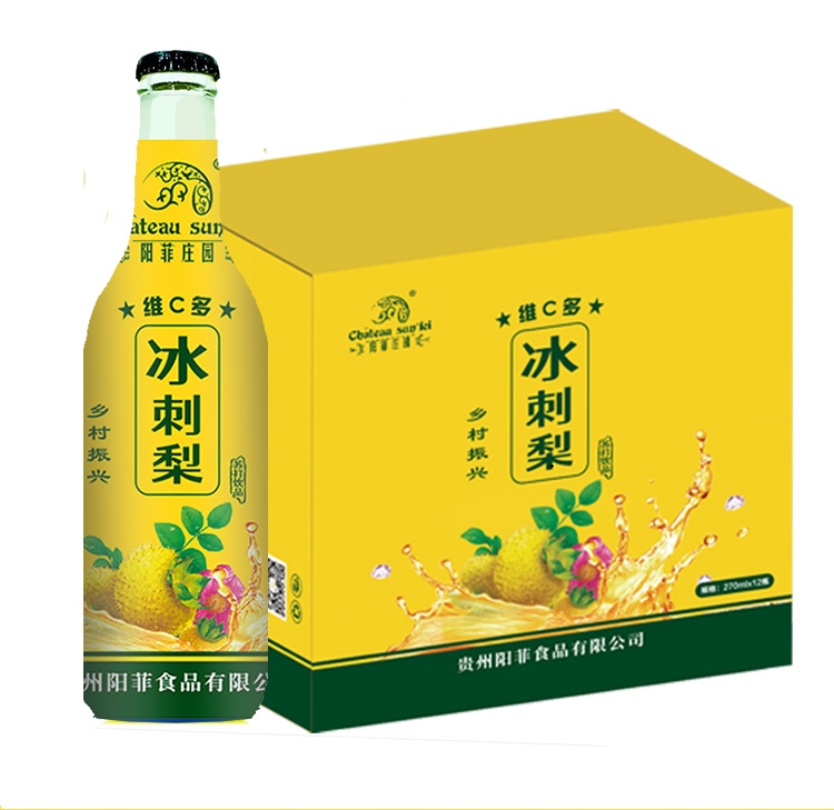 商品名称:规格:270ml*10瓶/箱商品简介:刺梨维生素C含量高,是苹果的800倍、猕猴桃的10倍。阳菲庄园刺梨气泡饮品,果香浓郁,与气泡互相融合,清香扑鼻、口感清爽、