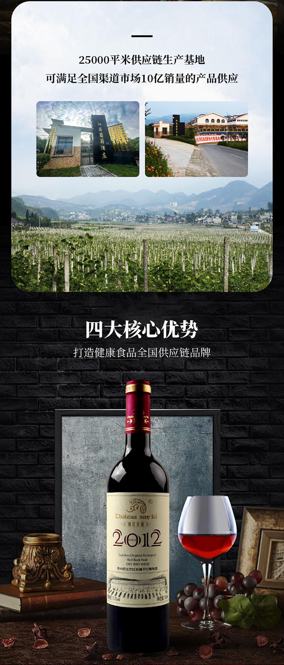 贵州阳菲食品有限公司,成立于2012年6月,注册资金2000万元。公司地址位于贵阳市息烽县小寨坝镇阳菲葡萄酒庄。贵州阳菲食品有限公司,是贵州省省级扶贫企业、贵阳市农业产业化经营重点企业,也是贵州省极具规模的葡萄深加工企业。公司目前在职员工36人;带动周边1320户农户发展种植葡萄10000余亩;拥有标准葡萄酒酿造厂房,加工、储存、灌装等生产车间、电子商务营销中心及