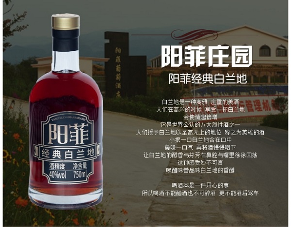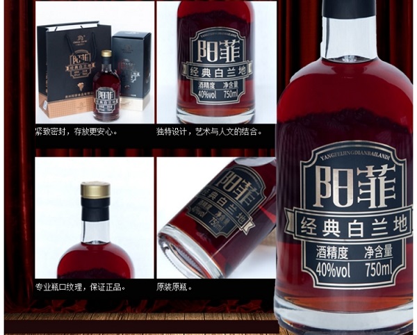 阳菲经典白兰地酒精度40.0%vol      净含量:750mL